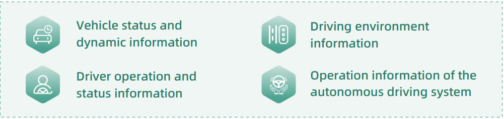 Data Storage System for Automated Driving, In vehicles equipped with high-level autonomous driving systems such as L3, L4, and L5, DSSAD records and stores a series of timestamped data during autonomous driving. In the event of a major safety-related incident, clear data on the interaction between the driver and the system can be provided before and after the incident, so as to confirm whether it is the driver or the system that is performing the control driving task, and whether the driving task is actually being performed.